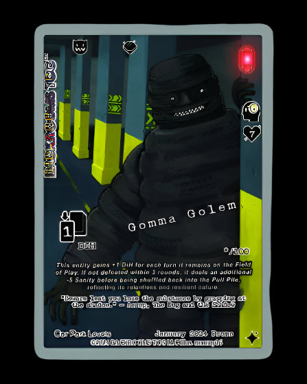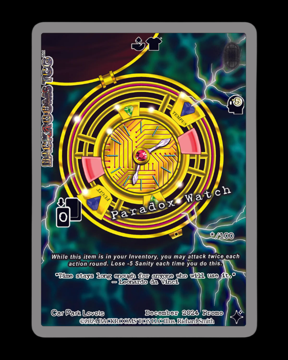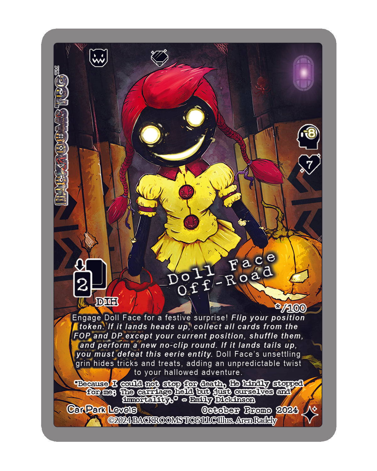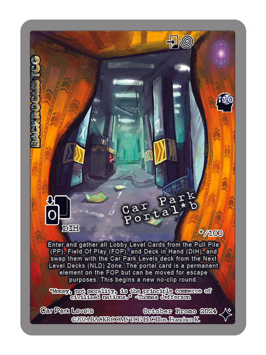 Step into the labyrinth of the Backrooms with our exclusive Monthly Holo Promo Cards! Each card, available in limited quantities, not only enhances your gameplay but also stands as a collector’s item that captures the essence and artistry of Backrooms TCG. These holographic beauties range from powerful entities to rare items, each woven into the rich, unsettling tapestry of the Backrooms universe. Use the drop-down menu to select the promo of your choice, but act fast—these limited edition cards are as elusive as some of the entities you’ll encounter in the game. Elevate your deck and enrich your Backrooms experience with a piece of holographic wonder. Collect them all and truly become a master of the Backrooms!